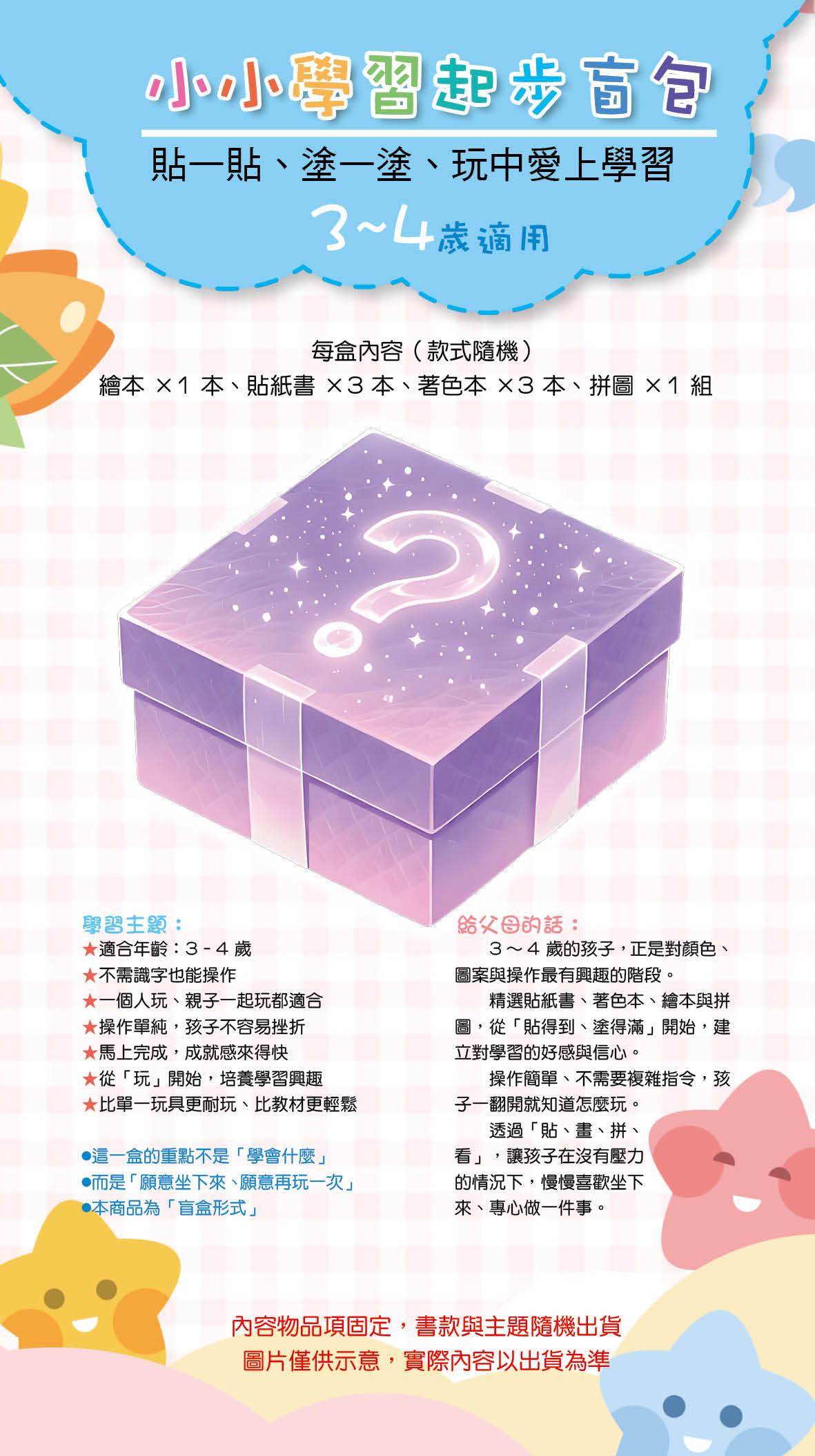 小小學習起步盲盒3–4歲|(繪本+貼紙書+圖畫本+拼圖)